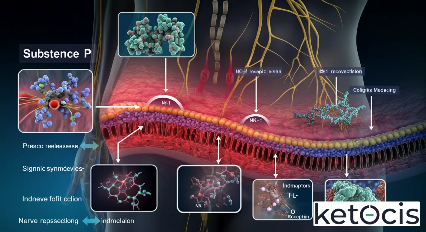 La reducción de la inflamación sistémica y cerebral a través de la producción de cuerpos cetónicos (especialmente el beta-hidroxibutirato) y la activación de vías como la AMPK y SIRT1 durante el ayuno, podría indirectamente atenuar la liberación excesiva o la señalización de la Sustancia P. Por ejemplo, al reducir el estrés oxidativo y modular la actividad de la microglía (células inmunes residentes del cerebro), la cetosis podría disminuir la producción de citocinas pro-inflamatorias que, a su vez, pueden potenciar la liberación de Sustancia P. Además, la mejora de la salud intestinal, un efecto documentado de la dieta cetogénica, podría impactar la señalización de Sustancia P en el eje intestino-cerebro, reduciendo la hipersensibilidad visceral y la inflamación asociada a trastornos gastrointestinales.