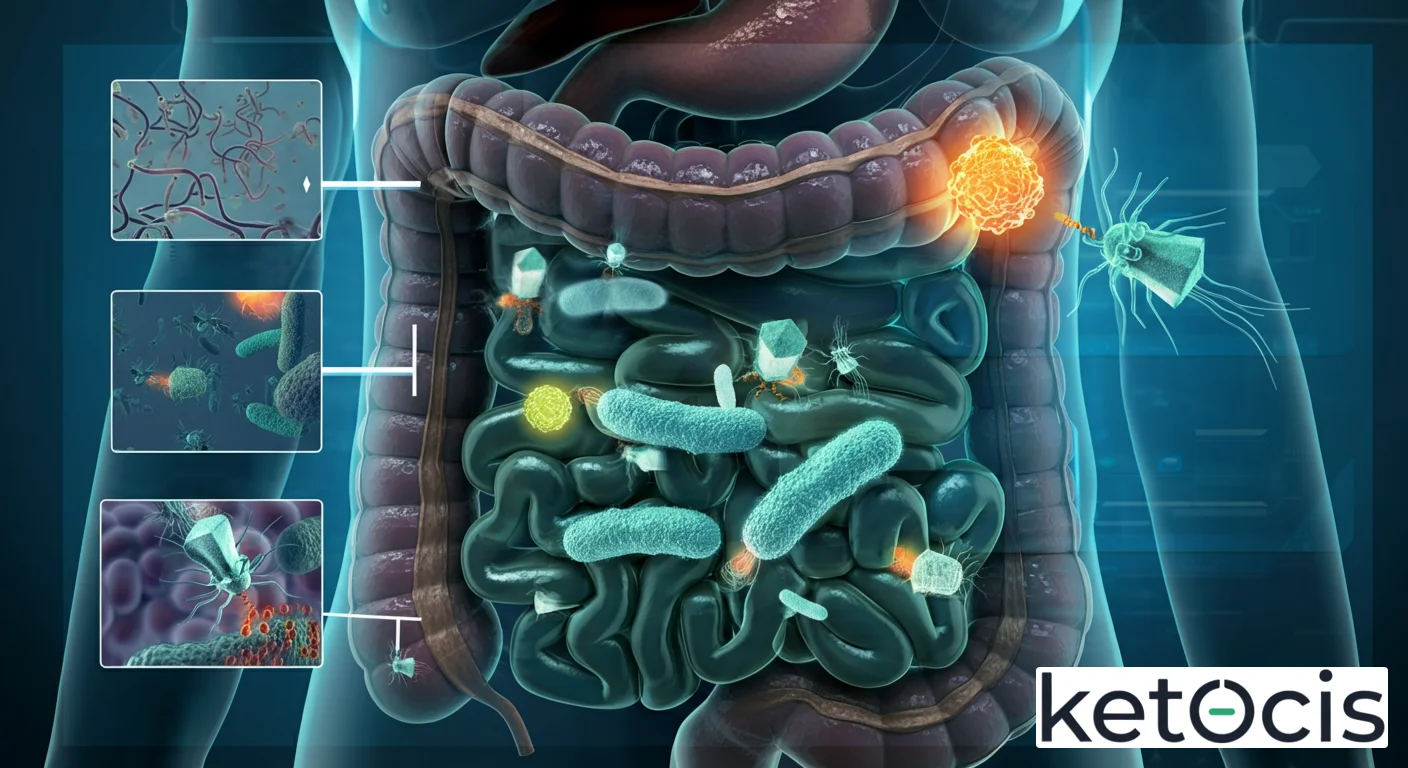 Las dietas cetogénicas son conocidas por inducir cambios profundos en el microbioma intestinal, favoreciendo ciertas especies bacterianas y suprimiendo otras. Dado que los fagos son específicos de sus hospedadores bacterianos, cualquier alteración en la composición bacteriana conlleva inevitablemente una reconfiguración del viroma fágico. Es plausible que los fagos actúen como mediadores de algunos de los efectos metabólicos de la cetosis. Por ejemplo, si una dieta cetogénica reduce una población bacteriana productora de lipopolisacárido (LPS), los fagos específicos para esa bacteria podrían amplificar o estabilizar esa reducción.